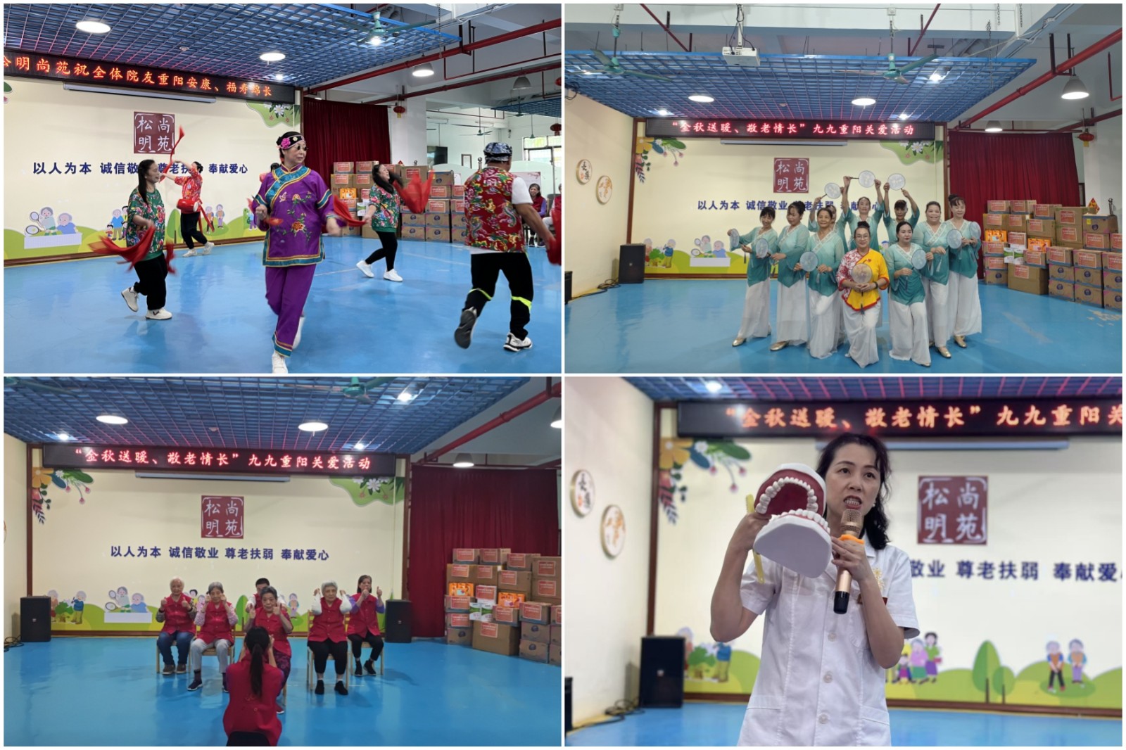 在颐养院活动中心,党员志愿者们与200余名长者共聚一堂,文艺表演现场掌声如潮,笑语盈门;好佰佰年口腔医院专家通过实物模型生动演示护牙技巧,让健康知识通俗易懂;游园会上,志愿者贴心陪伴长者参与互动游戏,暖意融融的场景诠释着“桑榆情暖重阳”的深情。针对失能、半失能长者,探访小分队上门慰问,细致了解生活需求,送上实用物资,并以实际行动解决困难,让特殊群体感受到“精准关怀”的温暖。