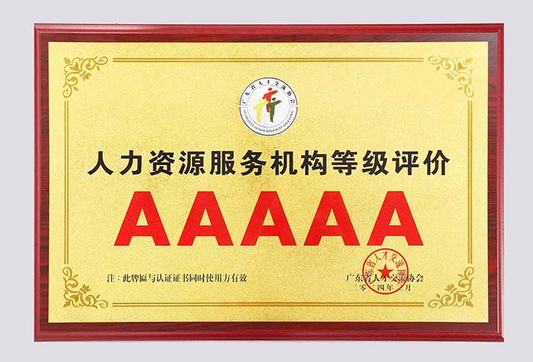 人力资源服务机构诚信5A等级