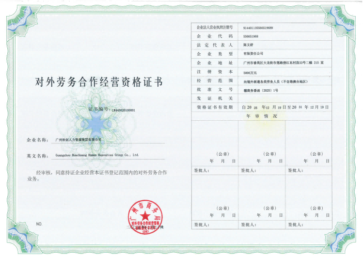 对外劳务合作经营资格证书