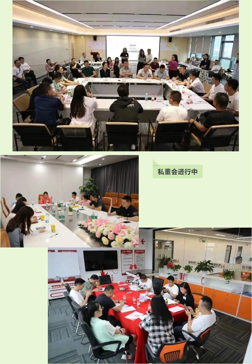 在私董会中,每位管理者都敞开心扉,坦诚相告,各抒己见,互相倾诉心里话,积极讨论如何更好拓客、如何更好管理团队、如何处理亲密关系、如何做好个人职业规划等十几个主题,现场每一个成员脑洞大开,发挥“智慧光芒”,集中智慧提供解决方案,笔记满满,收获满满。