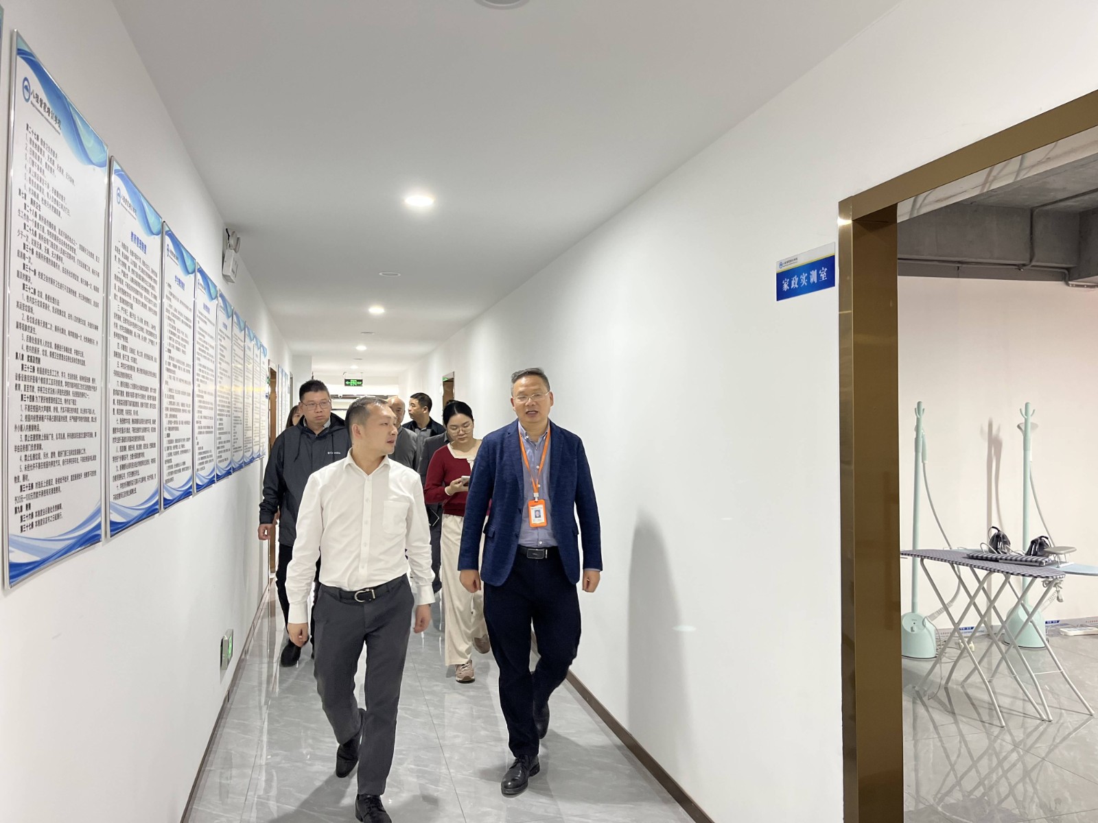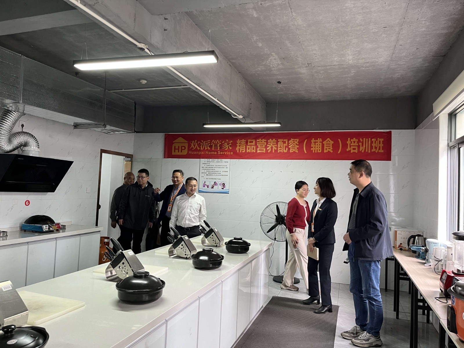 在蒋总的陪同下,邢义波常务副区长一行实地参观了广西华体会官网(中国)及旗下两家全资子公司——广西欢派家庭服务有限公司、南宁市八桂管家职业技能培训学校。蒋总为来宾详细介绍了人力板块业务开展情况、八桂管家职业培训课程的开办、实训教室的建设等情况。